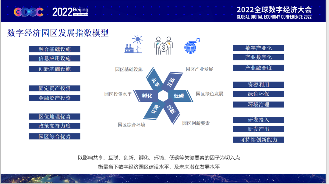 7月29日,2022全球数字经济大会数字经济产业园区发展论坛在北京召开,大会以“数字经济园区:数智时代与城市未来”为主题,会上发布了包括《数字经济园区发展指数》模型在内的一系列成果。