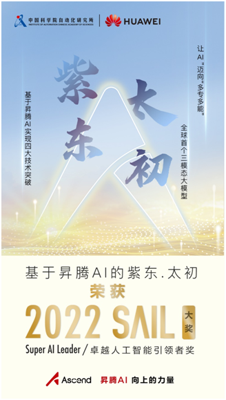 9月1日,2022世界人工智能大会(WAIC)在上海召开。WAIC卓越人工智能引领者奖(Super AI Leader,简称SAIL奖)正式揭晓,基于昇腾AI的全球首个三模态大模型“紫东.太初”,荣获SAIL大奖。