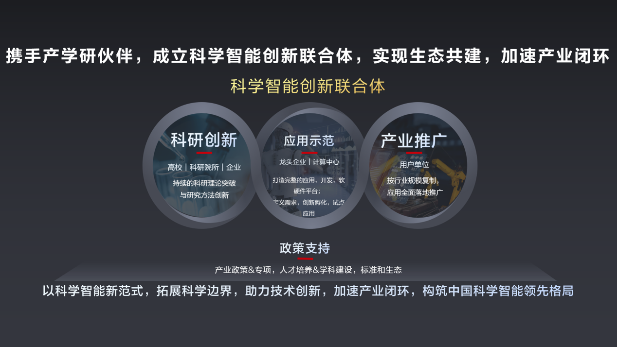 为更好地聚焦产业价值场景,打通科研创新、应用示范到产业推广的通道,华为倡议成立科学智能创新联合体,携手产学研用,突破科学前沿,加速科研创新到产业落地进程,加强交叉学科建设和人才培养,共建科学智能新生态。
