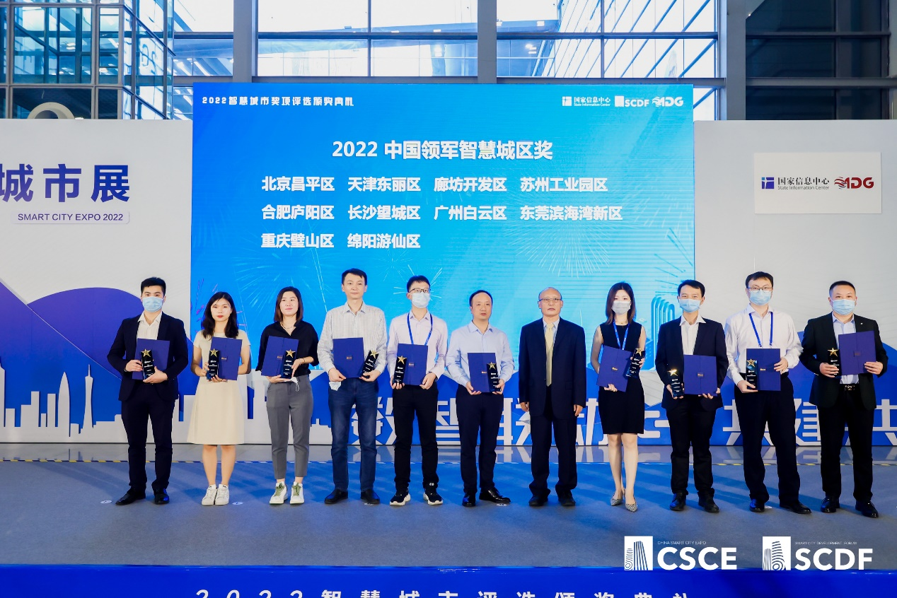 会上,长沙望城区、廊坊经济技术开发区、北京昌平区、天津东丽区、苏州工业园区、绵阳游仙区、广州白云区、合肥庐阳区等8个城市荣获“2022中国领军智慧城区奖”,云阳县斩获“2022中国领军智慧县级城市奖”。