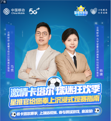 云南移动还将适时推出更丰富的优惠产品及服务,让广大用户及球迷朋友能够感受到“科技+体育”融合创新所带来的升级体验!