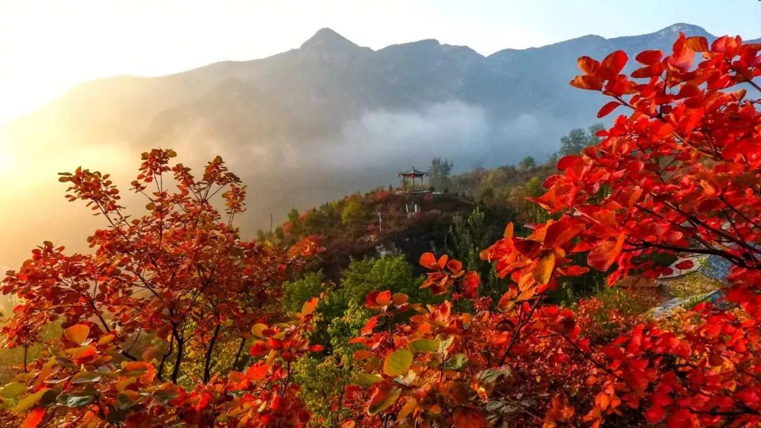 10月下旬,坡峰岭上的20万株黄栌会跳过黄叶期,直接步入绚丽的红。