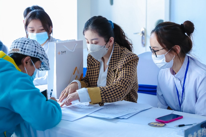 华润置地华北大区济南片区公司青年员工在交付现场指引客户填写表单