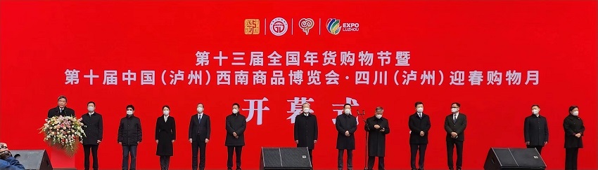 12月30日,由中国商业联合会主办、泸州市人民政府重点支持、泸州市西南商贸城投资管理有限公司承办的“2023(第十三届)全国年货购物节启动仪式”在泸州市西南商贸城成功举办。中国商业联合会会长姜明出席启动仪式并致辞。商务部原副部长张志刚,四川省人民政府副省长、致公党中央副主席、四川省委主委杨兴平,四川省商务厅厅长徐一心、中国商业联合会副会长傅龙成、中国商业联合会副秘书长、会展部部长、采购商分会会长李宝,中国蔬菜流通协会会长戴中久、商务部驻成都特派办副特派员邓德雄、四川省人民政府办公厅副主任葛晓鹏、重庆市大足区人民政府副区长杨桦等领导嘉宾以及有关市(州)商务系统、商协会和龙头企业的负责人出席开幕式。启动仪式同步在新华网、网易文创、天府LIVE进行全程直播。