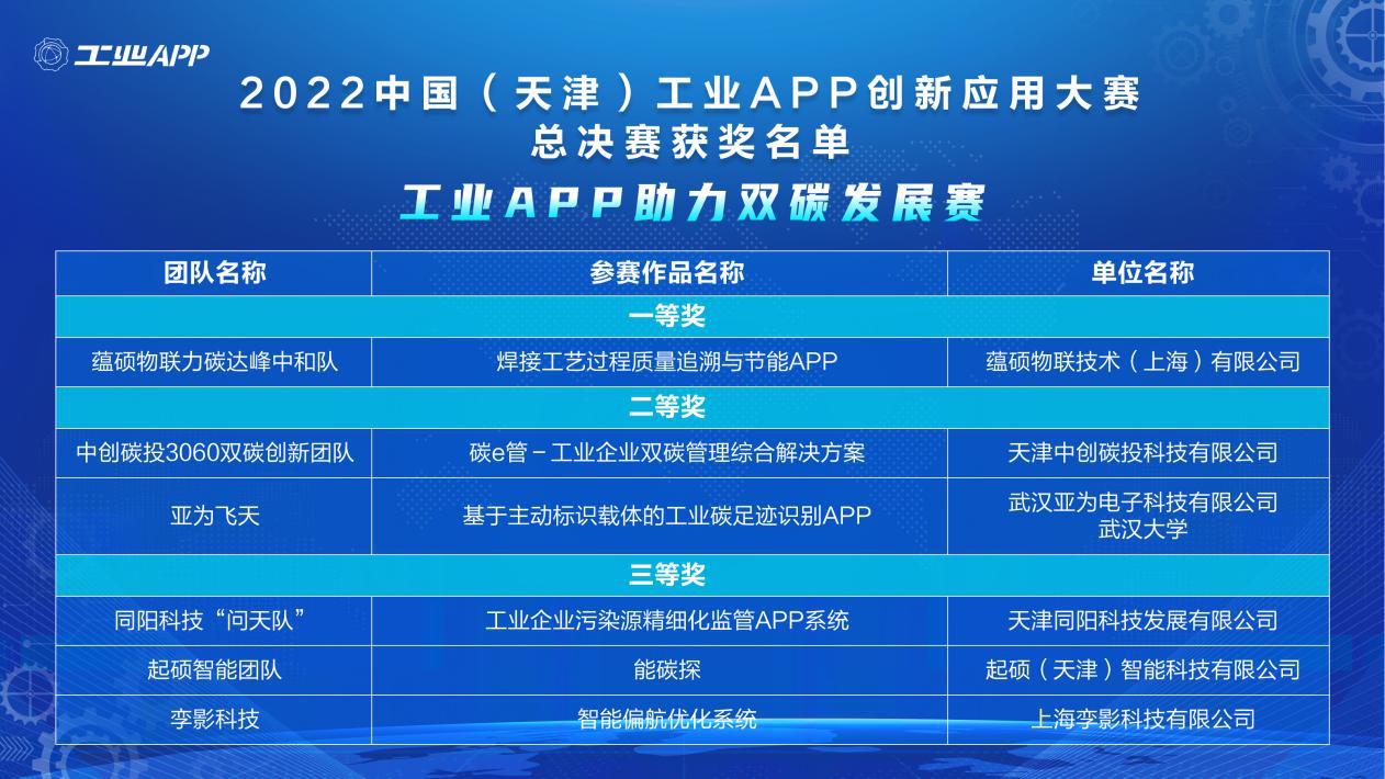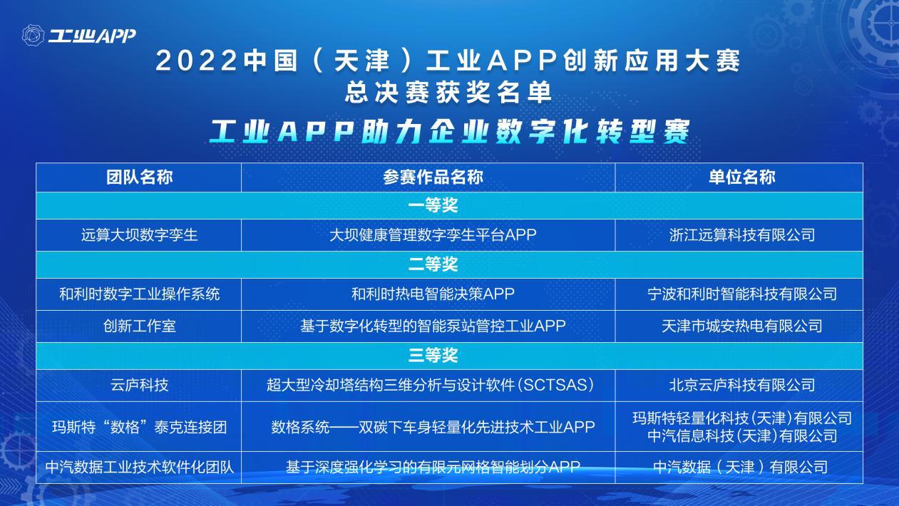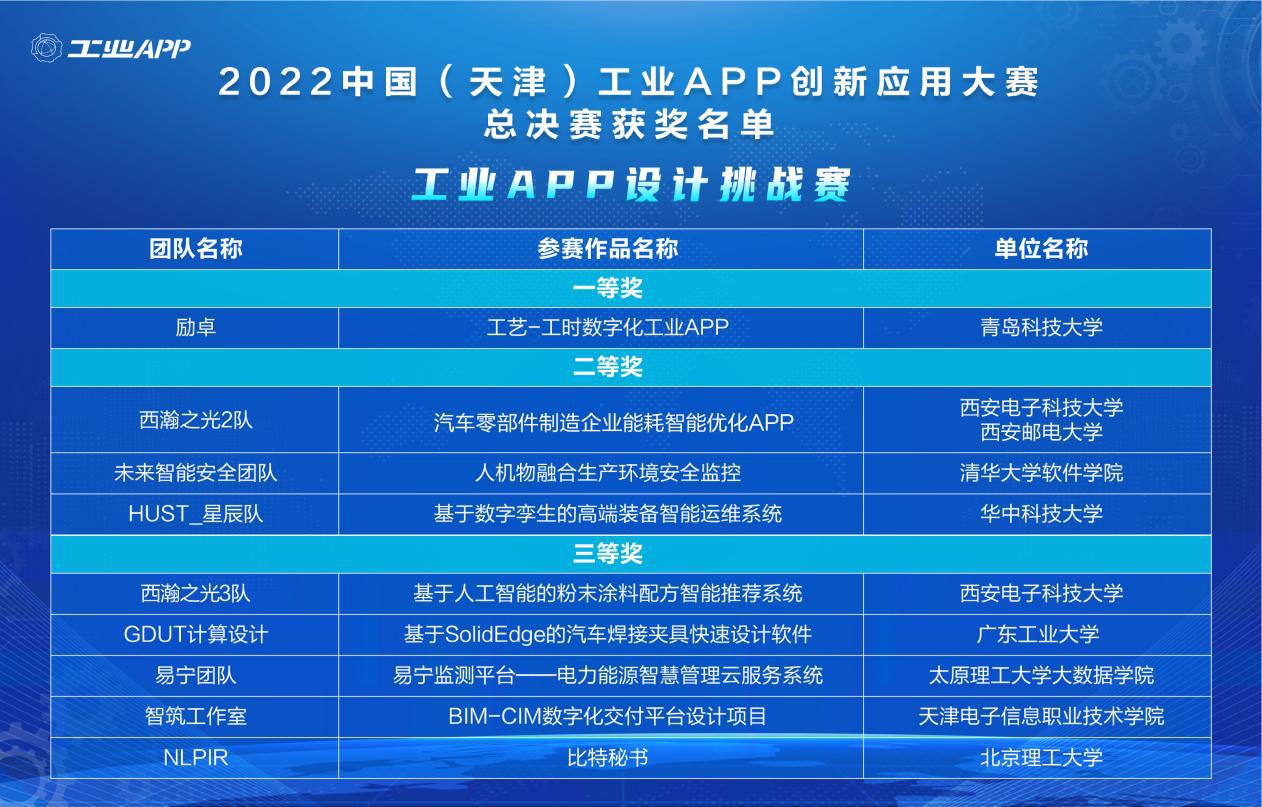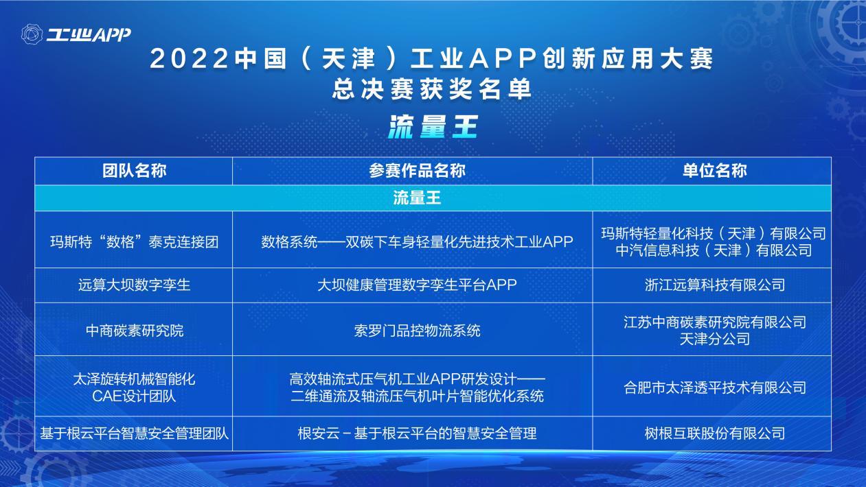 2022中国(天津)工业APP创新应用大赛四大赛道及工业APP流量王获奖名单正式公布。