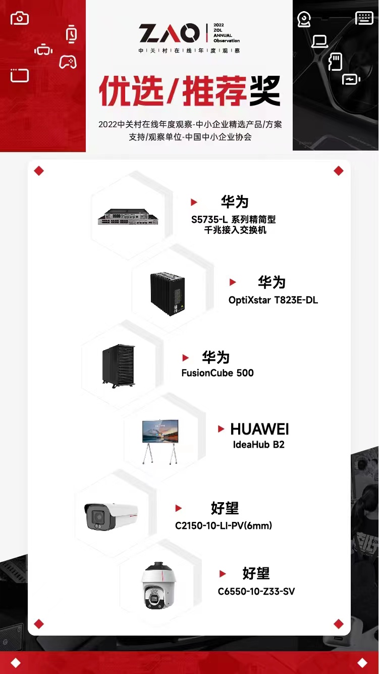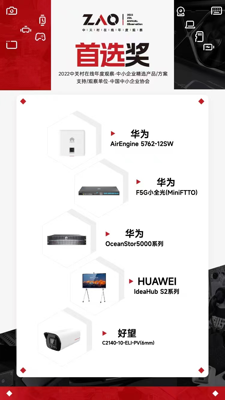 其中特别值得一提的是,华为AirEngine 5762-12SW、华为F5G小全光(MiniFTTO)、华为OceanStor5000系列、HUAWEI IdeaHub S2系列、好望C2140-10-ELI-PV等五款明星产品收获首选奖。首选奖作为此次评选的最高奖项,获奖产品须在产品能力、设计与技术创新方面具有绝对的突破性,同时在功能与数字化场景应用等方面具有非常高的实用价值。