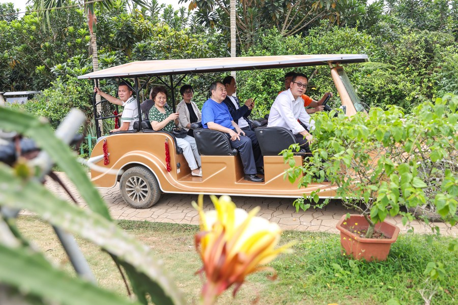 3月15日,游客乘坐观光车游览海南琼海“世界热带水果之窗”。新华社记者 张丽芸 摄