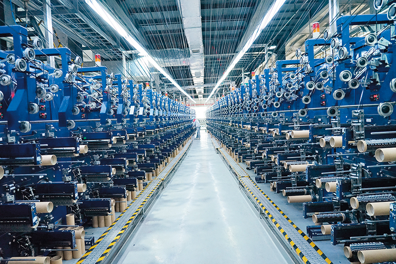 在中复神鹰碳纤维西宁有限公司,工作人员检查设备运行情况(2023年2月8日摄) 解统强摄/本刊