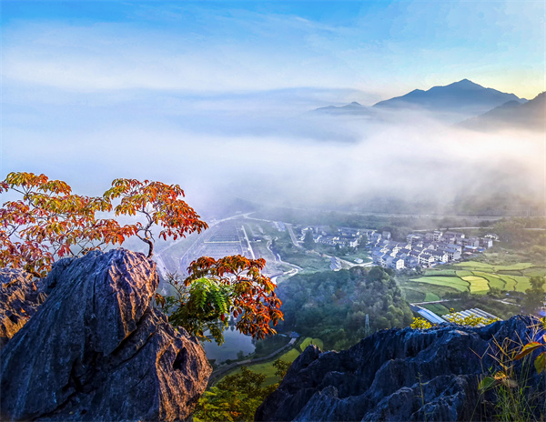 国家级森林公园——天阶山是徐霞客游线认证地之一,总面积939公顷,核心区山体为2.3平方公里,峰顶海拔高416米,森林覆盖率高达91%,有“喀斯特地貌上的一片绿洲”之称。徐霞客登上天阶山后被景观所吸引,盛赞此山“翠壁嶙峋,迥与诸峰分形异色”“石骨棱厉,透露处层层有削玉裁云之态,苦为草树所翳,故游者知洞而不知峰”;更以奇石、异树、怪藤、幽径、野桂、古庵、名窟等“七巧”闻名,深入天阶山中无疑是置身在天然氧吧腹地,是绝佳的天然避暑胜地。