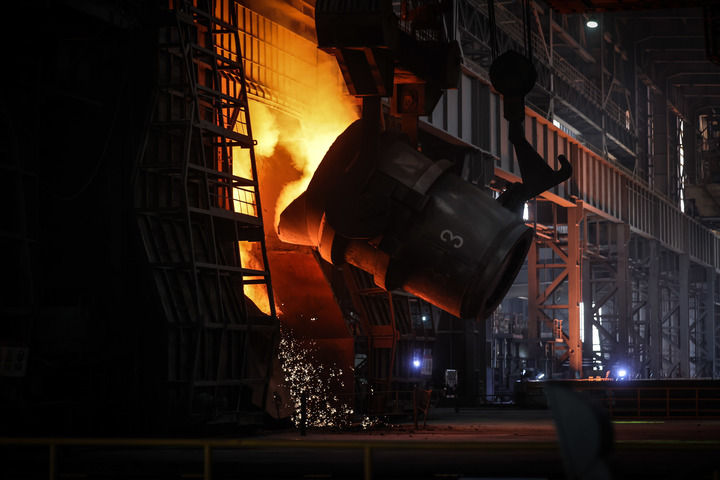 鞍钢集团鞍钢股份炼钢总厂三分厂生产车间。新华社记者潘昱龙摄