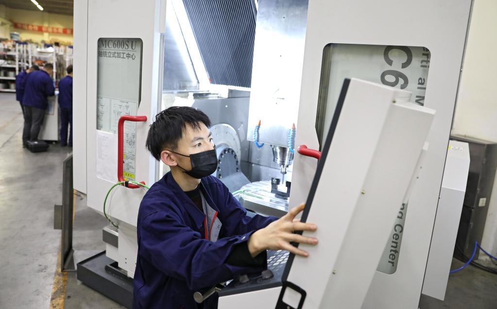 科德数控股份有限公司职工在车间调试设备。新华社记者姚剑锋摄