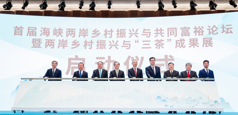 4月13日,首届海峡两岸乡村振兴与共同富裕论坛暨两岸乡村振兴与“三茶”成果展在福建厦门国际会议展览中心开幕。