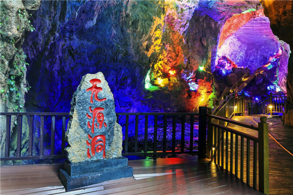 洞内,高大宽敞,泉水奔涌,钟乳荟萃,宛若迷宫。其水,干净、清凉、是流淌的美玉,舞动的仙女,飘逸的精灵,被誉为“灵山圣境、兀洞仙泉”。洞外,是无源洞峡谷,像一条卧龙盘踞长江之滨,蕴藏着2.5亿年地质沧桑。峡谷及洞内常年气温20˚C左右,两岸植被繁茂,鸟鸣山幽,冬暖夏凉,气候宜人,是休闲避暑的绝佳场所。