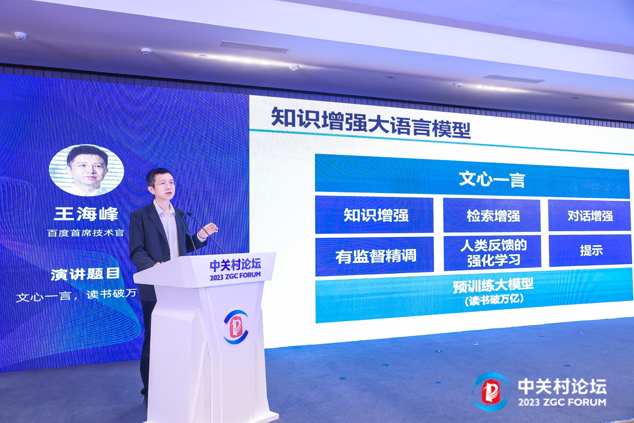5月25日至30日,由科技部、国家发展改革委、工业和信息化部、国务院国资委、中国科学院、中国工程院、中国科协、北京市政府共同主办的中关村论坛在京召开,来自80多个国家和地区的科学家、企业家汇聚中关村,围绕人工智能、生命科学、清洁能源等前沿领域,探讨科技创新趋势。百度首席技术官王海峰出席人工智能大模型发展论坛,以《文心一言,读书破万亿》为题,阐述大语言模型技术及产业模式,展示文心一言在知识问答、写文稿、作诗、生成视频、推理计算,以及工作场景中智能总结等多方面能力,展望大模型将与实体经济深度融合,加速产业升级和经济增长。