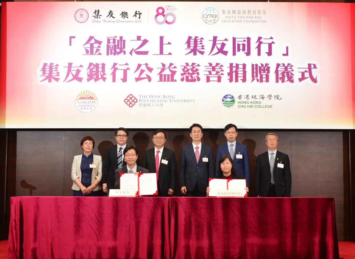日前,集友银行“金融之上,集友同行”公益慈善捐赠暨八十周年庆典活动筹备启动仪式在香港举办,活动旨在履行中资机构“爱国爱港、服务社会”的责任和使命,践行爱国侨领陈嘉庚先生“以行养校”的创行初心。活动上,集友银行向集友陈嘉庚教育基金、的总爱心基金会各捐赠港币100万元;集友陈嘉庚教育基金向香港理工大学、香港珠海学院各捐赠港币100万设立奖学金,进一步扩大对香港教育的支持和对基层民生的关爱。香港中联办、香港特区政府、厦门市委市政府、香港立法会议员,以及香港金融同业、社团联会、高校的有关领导和嘉宾出席活动。