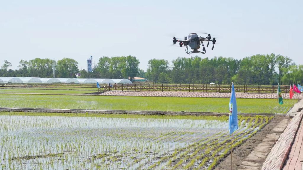 在北大荒集团宝泉岭农场有限公司双峰山管理区种植户闫鹏家的地块上空,一架植保无人机正向稻田池里喷洒液态肥,闫鹏站在地头拿起手机监看着无人机的飞行路线。“用无人机往稻田池里施肥喷洒得特别均匀,秧苗吸收好,还能减少肥料浪费。”闫鹏笑着说,无人机喷洒液态肥效率高,预先在电脑上规划好飞行路线,无人机就可以自行作业,和纯人工作业相比要轻松很多。