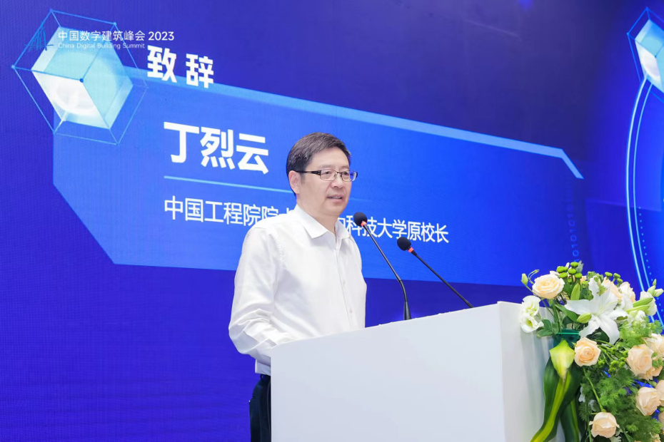 中国工程院院士丁烈云致辞。指出,国产BIM及其数字化转型领域的痛点和挑战。着重强调非线性图形引擎在建模软件中的重要性,他强调了BIM与分析软件的结合,特别是力学仿真的重要性。同时,他表示BIM在特定方面的信息安全价值远远高于经济价值。最后,丁院士还提到了绿色建筑仿真软件的发展机遇,并鼓励业内企业抓住机遇推动行业发展。