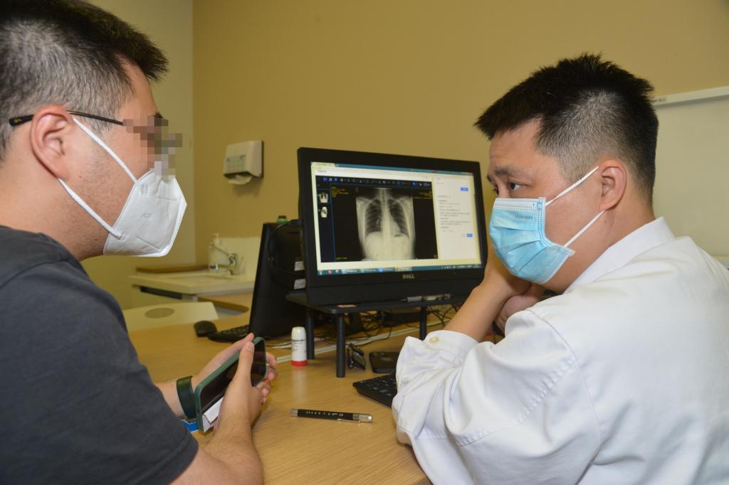 江苏省人民医院医生借助“云影像”为患者唐先生看病。(侯雨萌 摄)