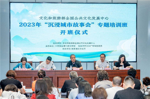 8月21日,由文化和旅游部全国公共文化发展中心主办的“沉浸城市故事会”专题培训班在江苏省张家港市开班。文化和旅游部全国公共文化发展中心主任白雪华,副主任尹寿松,张家港市委常委、宣传部部长陈卫兵,市委宣传部副部长、市新闻出版局(版权局)局长李忠影,市文体广电和旅游局局长周颖出席开班仪式。