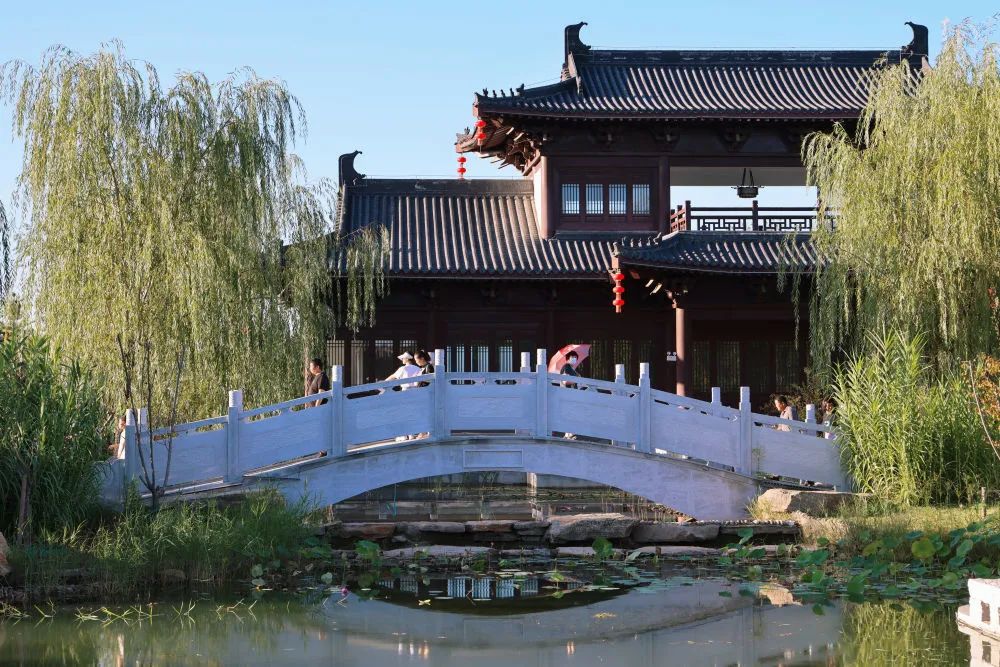 园博园的美,只有真正走进才会被惊艳到。园博园内,大运河纵穿而过,大运河的自然生态风光与园博园院落式建筑、园林花卉景观有机融为一体。昔日的荒芜之地,如今已化身城市天然“绿肺”。