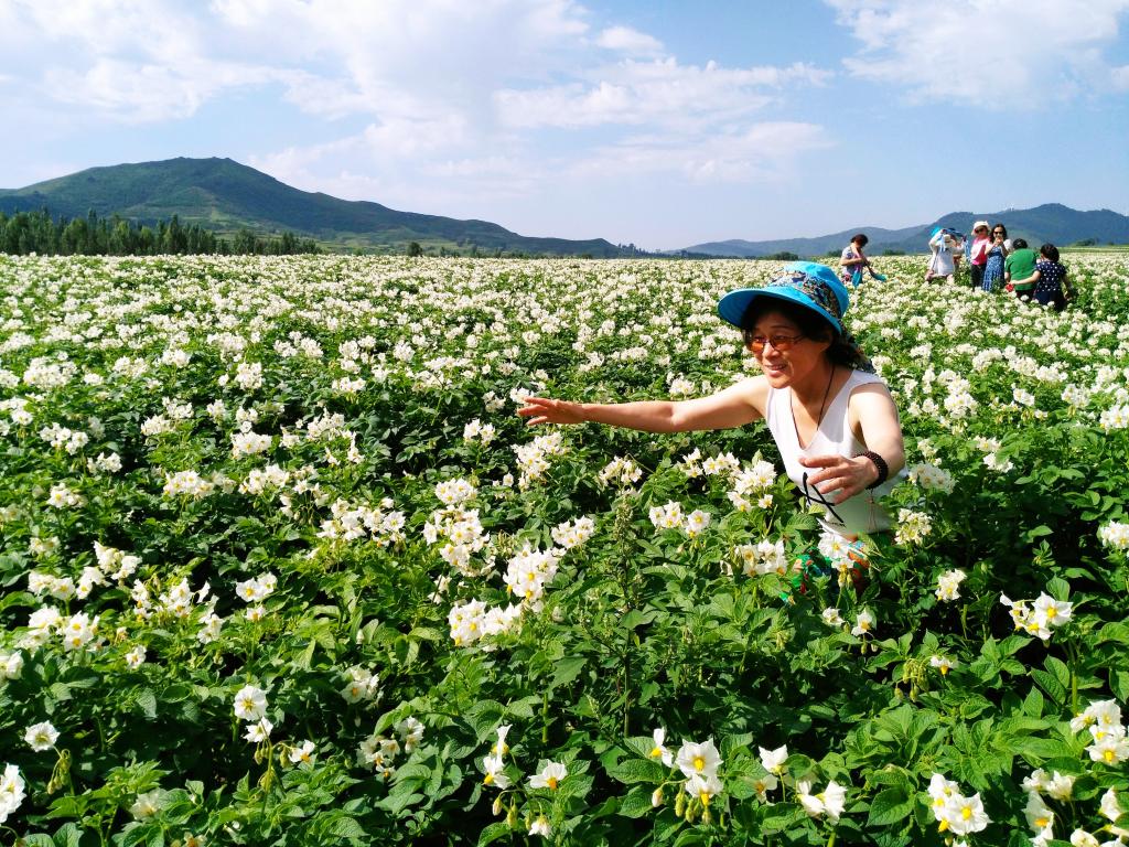 在花海中拍照留念,在大自然中呼吸新鲜空气……依托七八月土豆花开满山坡的花海景致,当地已经举办了9届“土豆花开了”旅游文化月活动。“这里天气凉爽,我们一家人可以赏花、徒步、品尝美食,享受暑期慢生活。”来自太原市的游客王成林说。