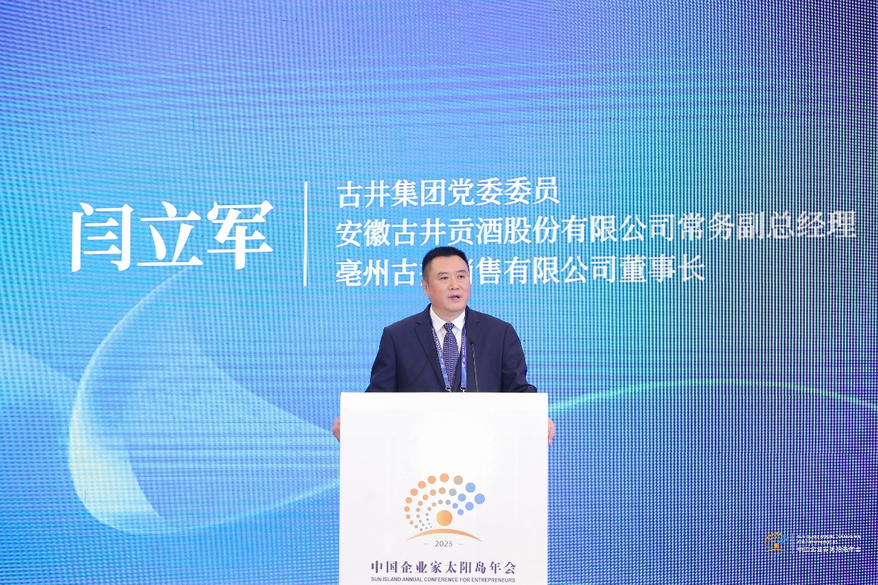 古井集团党委委员、安徽古井贡酒股份有限公司常务副总经理、亳州古井销售有限公司董事长闫立军发表主题演讲