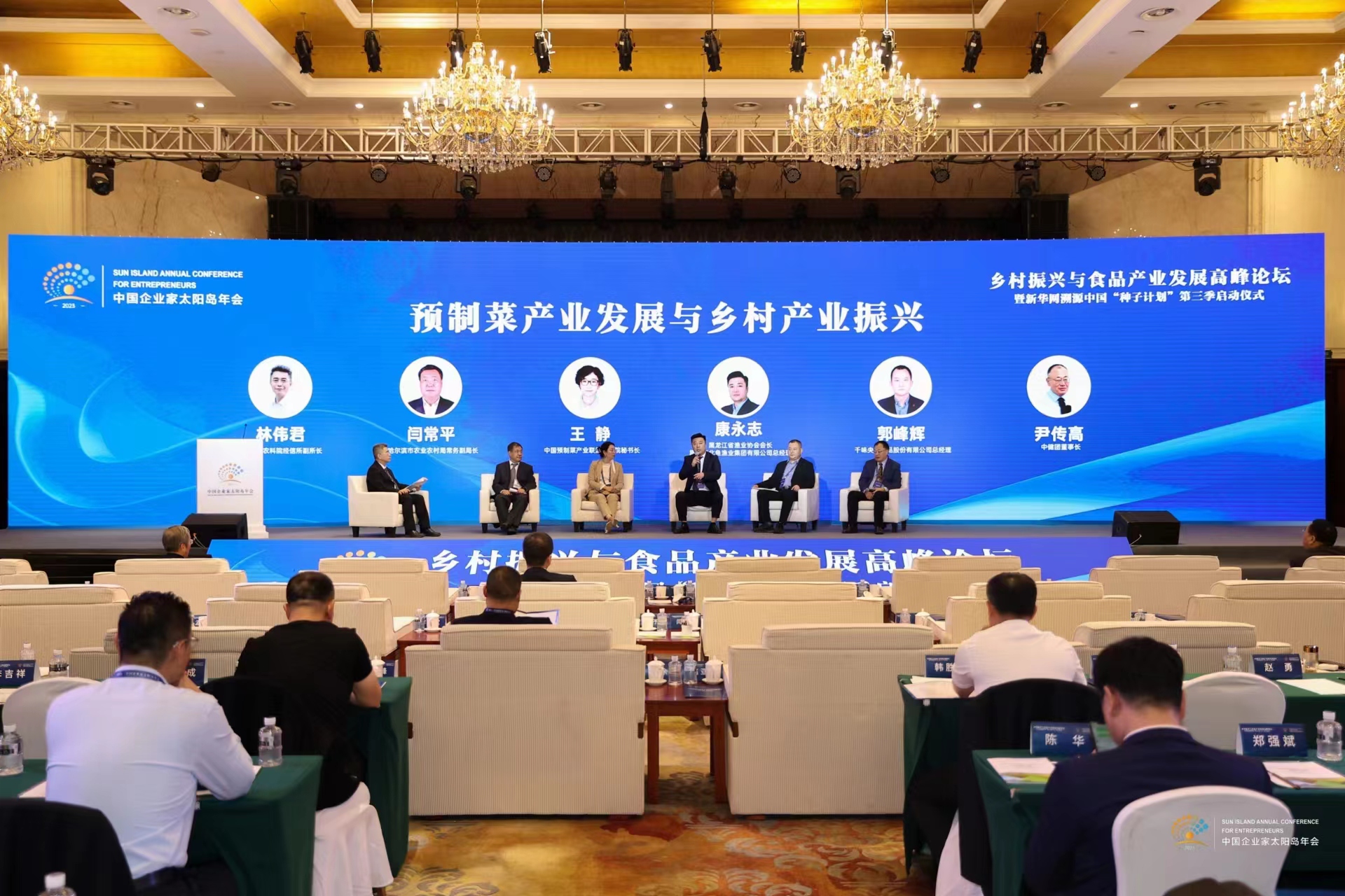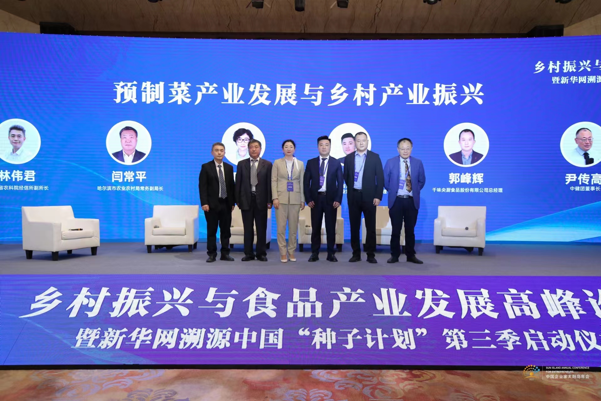 2023中国企业家太阳岛年会-乡村振兴与食品产业发展高峰论坛暨新华网溯源中国“种子计划”第三季启动仪式9月26日下午在哈尔滨举行。在圆桌对话环节,围绕“预制菜产业发展与乡村产业振兴”主题,哈尔滨市农业农村局常务副局长闫常平,中国预制菜产业联盟研究院秘书长王静,黑龙江省渔业协会会长、黑龙江北鱼渔业集团有限公司总经理康志永,千味央厨食品股份有限公司总经理郭峰辉,中健团董事长尹传高参与讨论,分析研判预制菜领域的现状和未来发展趋势,分享新技术、新思路和新理念,为推动预制菜产业发展出谋划策。广东省农科院经信所副所长林伟君为本次圆桌对话环节主持人。