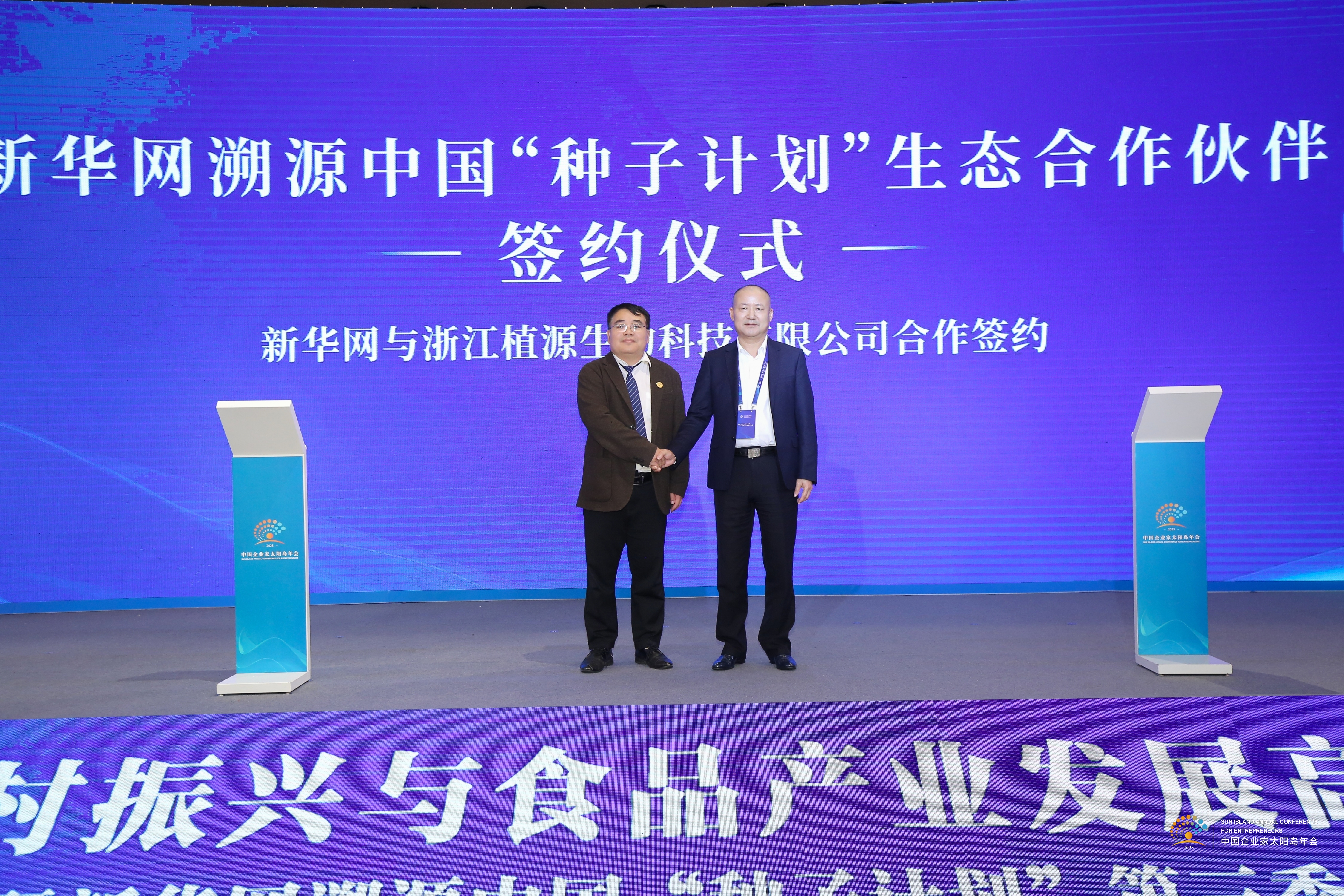 新华网与浙江植源生物科技有限公司合作签约,新华网物联网技术总监葛振斌,浙江植源生物科技有限公司创始人汪际军现场签署合作协议,并合影留念。