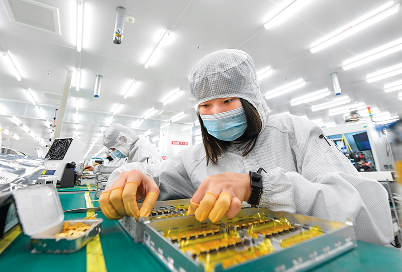在位于武汉中国光谷的光电器件研发制造商——武汉光迅科技股份有限公司生产车间内,技术人员在光模块生产线上作业(2023年4月11日摄) 程敏摄/本刊