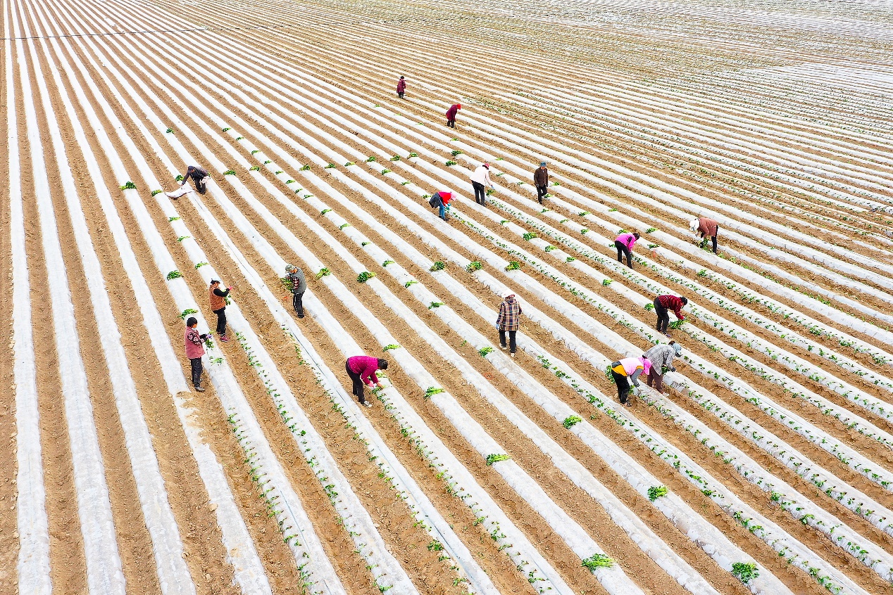 清丰县韩村镇高标准农田红薯种植基地正在栽苗
