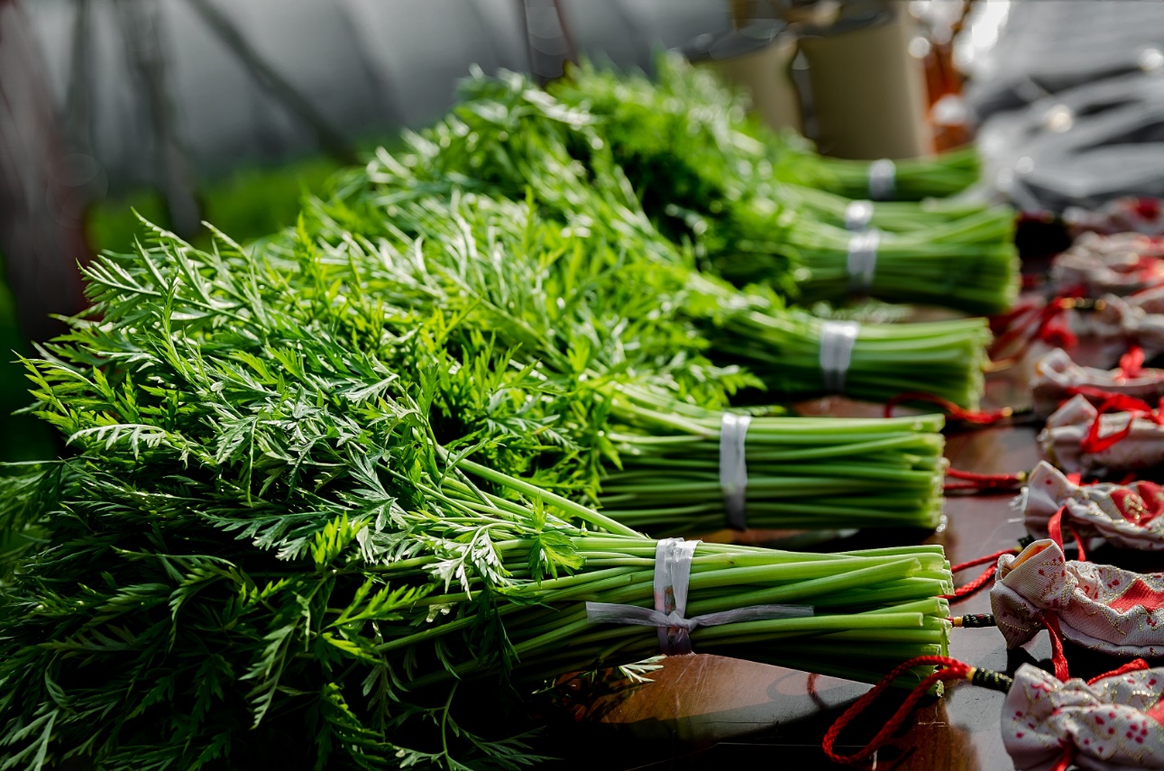 四川省道地药材名目众多,川芎主产于四川彭州,是伞形科中药材,香浓郁、味苦辛、微回甜、有麻舌感,可用于活血行气、祛风止痛疗效。同时,其茎叶口感与芹菜类似,可以用于烹煮汤肴,亦可烹草本茶。