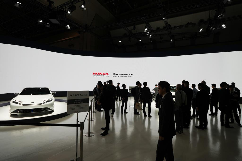 2023年10月26日,在日本东京,人们在日本移动出行展本田展区参观。当日,日本移动出行展在东京正式开幕,展览将持续到11月5日。新华社记者 张笑宇 摄