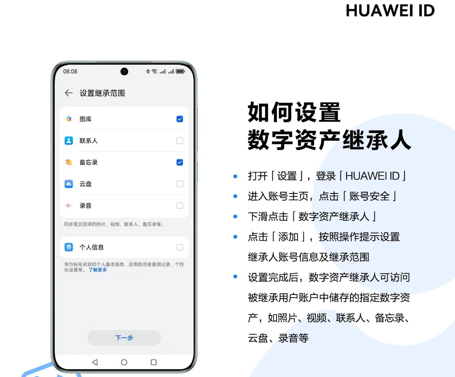 今年8月,华为宣布推出“数字资产继承”服务。该计划允许用户自主选择包括云图库、联系人、备忘录、日历、云盘等数字资产范围,并添加信任的亲友作为自己的数字资产继承人。完成添加后,华为账号会生成一个访问密钥,此密钥用于后续系统认证并由用户保管和转交。为了确保数据安全访问,会对申请人进行多重验证,包括继承人实名认证匹配、持有的访问密钥验证以及相关证明材料人工审核。只有在通过这些验证后,继承人才能获得访问数据的权限。从严格的数据收集和使用规定、端到端加密技术到应用权限管理、隐私空间功能、应用权限管理等多个维度,鸿蒙操作系统正全方位护航用户隐私安全,在技术与人文的十字路口给出了一个温暖的解决方案。
