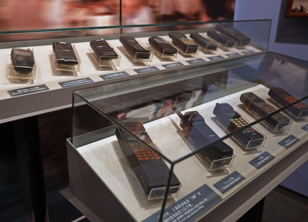 馆内展示的各种手持式移动电话。新华社记者刘颖 摄