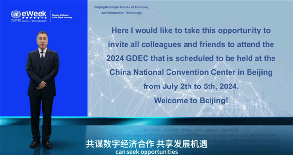 在此次会议的高层论坛上,北京市经济和信息化局局长姜广智以数字人分身的形式,采用生成式AI(AIGC)技术发表演讲,分享了北京市数字经济发展的成果,引起现场广泛关注并获得热烈反响。本次“数字人+AI”技术应用在联合国贸发会议历史上是首次发布,展示了北京在推广前沿技术应用方面的创新精神。