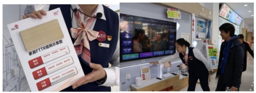 这里不仅是通信服务的“有求必应屋”,也是宽带服务的“家装咨询处”。在这里办理宽带业务,不再是“交钱领单据,回家等师傅”,而是先体验再购买,现场感受全屋光宽带与普通宽带的差别。工作人员会现场拿出家庭FTTR组网示意图,用户可以亲眼观察、亲手触摸隐形光纤、普通光纤、六类网线间的区别,以及部署在墙体后的效果。