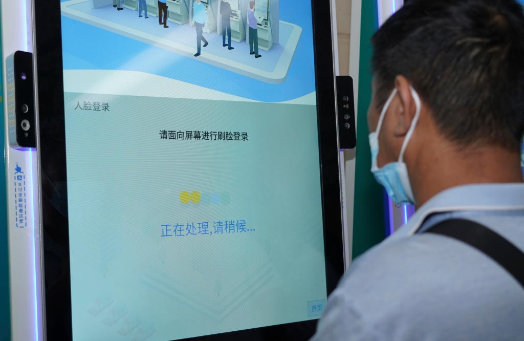 市民在一家医院的自助设备上进行人脸识别。新华社发(梁志强 摄)