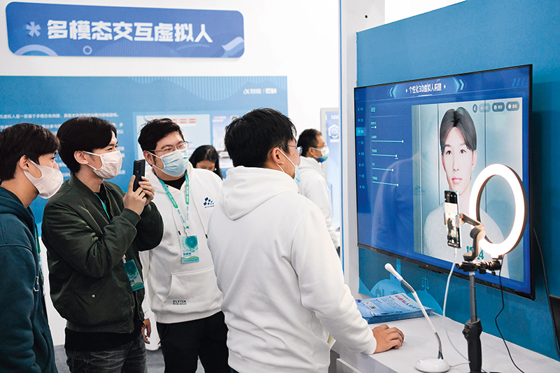 观众在安徽省合肥市举行的第五届世界声博会上了解“个性化3D虚拟人构建”产品(2022年11月17日摄) 张端摄/本刊