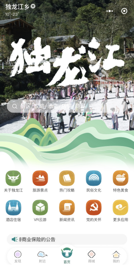 “云游独龙江”智慧文旅平台以大数据、人工智能、云计算、虚拟现实、增强现实等新一代信息技术为支撑,以轻量化载体小程序为入口,其中涵盖了热门攻略、民俗文化、VR云游、酒店住宿等功能,提供了专业权威的文旅资讯、个性化的产品服务,同时也为广大游客提供“吃、住、行、游、购、娱”等方面的智慧旅游服务,实现了一个二维码畅游独龙江。