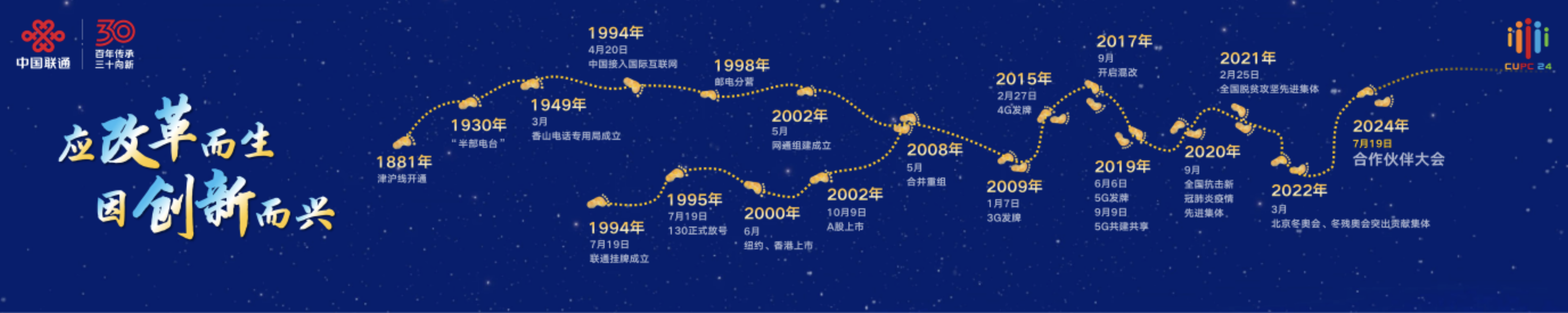 百年传承记录了中国联通守正创新的历史足迹,三十向新见证了中国联通融合开放的发展之路。一路走来,中国联通离不开合作伙伴的鼎力支持,在百年传承、三十向新的重要时点,将与合作伙伴向新同行,共创智能新时代。