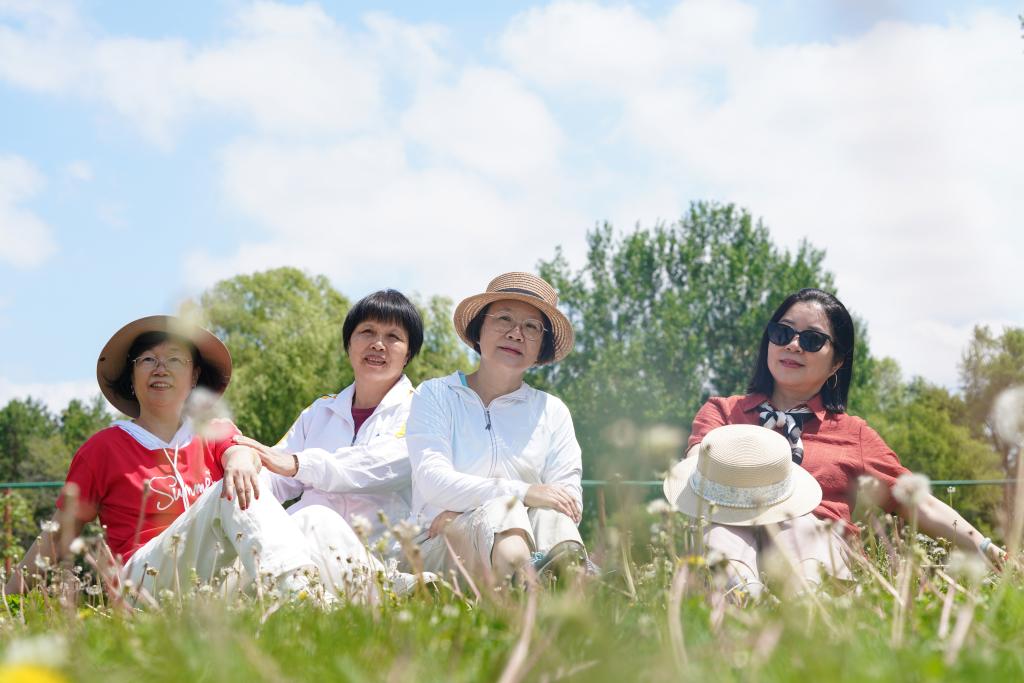 游人在太阳岛国家级风景名胜区拍照留念(6月4日摄)。