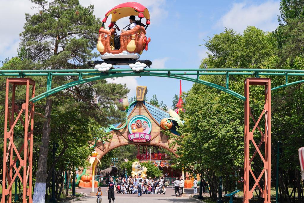 游人在太阳岛风景区游乐区体验游玩(6月4日摄)。