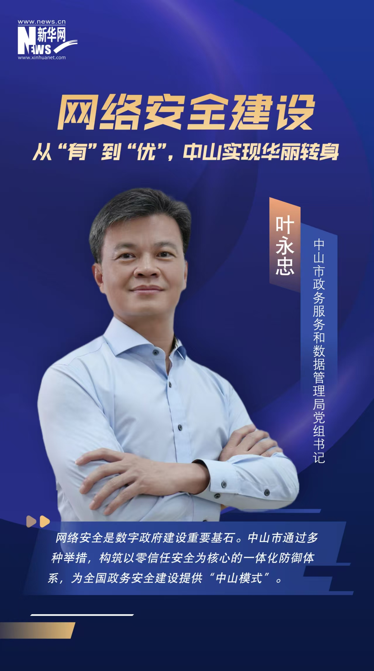 值此2024年国家网络安全宣传周召开之际,新华网对话广东省中山市政务服务和数据管理局党组书记叶永忠,分享“中山模式”网络安全建设背后的故事。