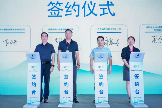 推介会现场还举行了大湾区企业与沈阳优质企业的合作签约仪式。来自大湾区的泰德(广州)科技信息服务有限公司、华润万家有限公司、苏宁易购集团股份有限公司、广东福东海药业有限公司、深圳市志和众诚实业有限公司、广州市十万电商科技有限公司,分别与来自沈阳的沈阳华美食品有限公司、辽宁众盟禽业有限公司、沈阳山山伟业食品有限公司、沈阳新供销运营集团管理有限公司、辽宁昊明食品集团有限公司、吉美食品(辽宁)有限公司进行合作签约。本次推介会总订单合同额达1.2亿元,不仅为沈阳农产品打开了更广阔的市场,也为大湾区消费者带来了更多优质、安全、健康的产品选择。