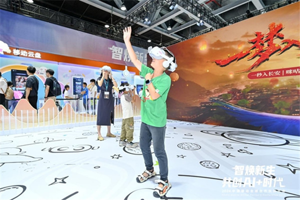 在元宇宙空间里,“一梦入大唐”的沉浸式体验正带领大家感受盛唐文化的魅力;在AI智能座舱展项现场,现场观众正亲身感受人车交互新体验,构建人车家、车路云生态融合体系,无论是远程控制家中设备还是享受个性化的娱乐内容,都能得心应手。更有AI+文旅、移动云盘AI写真等AI宝贝等展项吸引了现场目光,引得观众纷纷驻足。