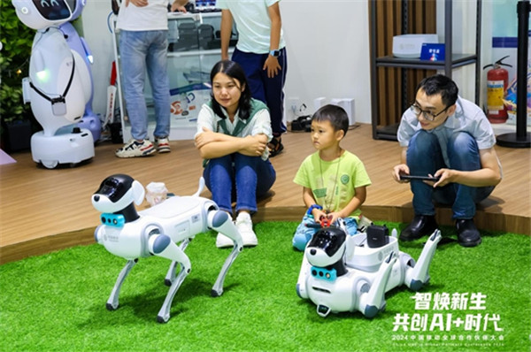 本次大会中国移动展区已将AI元素加到最满,并将“宝藏”隐藏在众多展区之中,吸引观众前去寻“宝”。在移动爱家展区,聚焦家庭场景而打造的自主 IP 人形机器人家族正与观众们互动,赋予机器人以生活萌宠、家庭摄影师、生活助理等角色。机器狗轮式机器人、人形机器人还在现场展示如何帮助主人完成快递寄取件、Vlog 拍摄、吃药通话提醒、厨房清洁、餐点制作等任务。