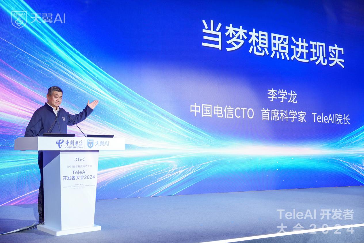李学龙以“当梦想照进现实”为题进行分享,并发布星海AI中台、天翼AI开放平台、星辰智能体平台等开放平台,助力开发者大幅降低开发门槛,构建低成本、高效率的创新开发生态。同时,他还介绍了TeleAI在大模型全模态、全尺寸、全国产化体系构建的最新进展,及让智能可以像水一样流动到任何地方的智传网技术前瞻布局。
