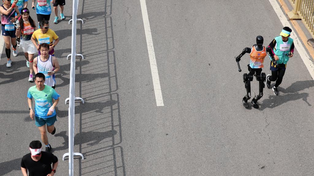 新华社北京4月19日电(记者李春宇、张骁)在春日跑马热潮再度来袭的4月,一场“人机共跑”的半程马拉松为路跑赛事添了“一把火”。