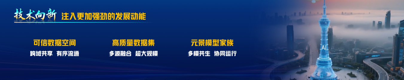 攻关数智技术,升级可信数据空间,实现数据要素有序流通,形成多源融合的高质量数据集;增强自研模型能力,汇聚业界优秀实践,迭代多模共生的元景模型家族。
