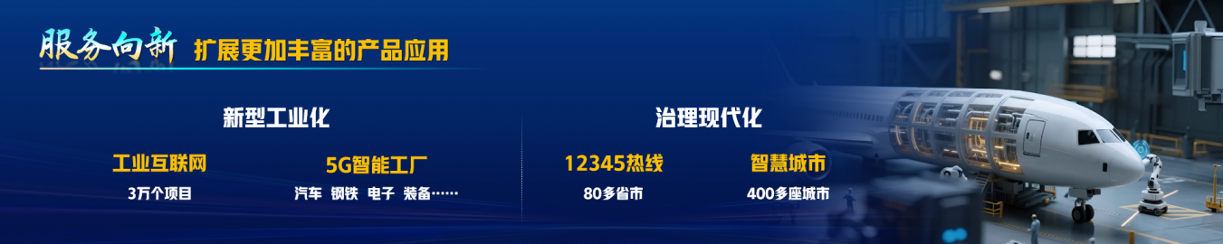 发挥信息网络、数字技术优势,服务经济、政务、文化、社会、生态数字化发展,培育新质生产力。服务传统产业转型升级和新兴产业发展壮大,实现工业大类全覆盖,打造协同设计、柔性制造、智能运维等新应用,助力汽车、钢铁、电子、装备等行业建设一批智能工厂。推进12345热线运营智能化升级,迭代交通、环境、应急、公共设施、文化场馆等数字化管理平台,服务400多座城市提升创新发展和智慧治理水平。
